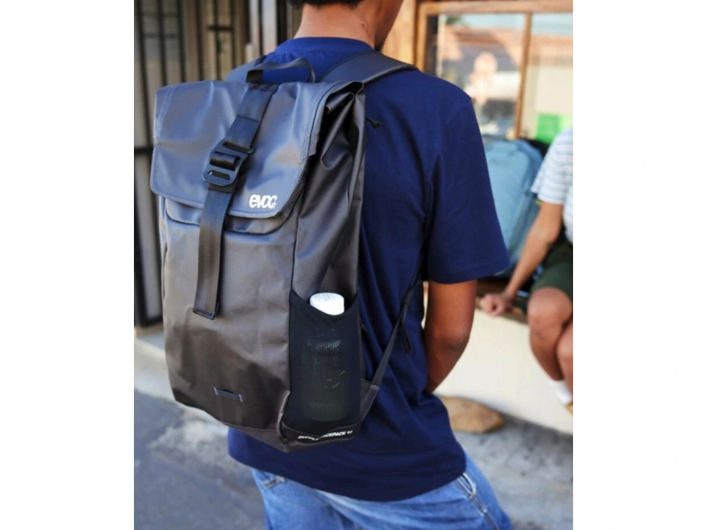Praktický městský batoh ve stylovém designu od značky Evoc. Voděodolný, pevný materiál bez PVC ochrání vaše věci i při nepříznivém počasí. Chytré víko s hliníkovou přezkou umožňuje snadné nastavení objemu hlavní komory.