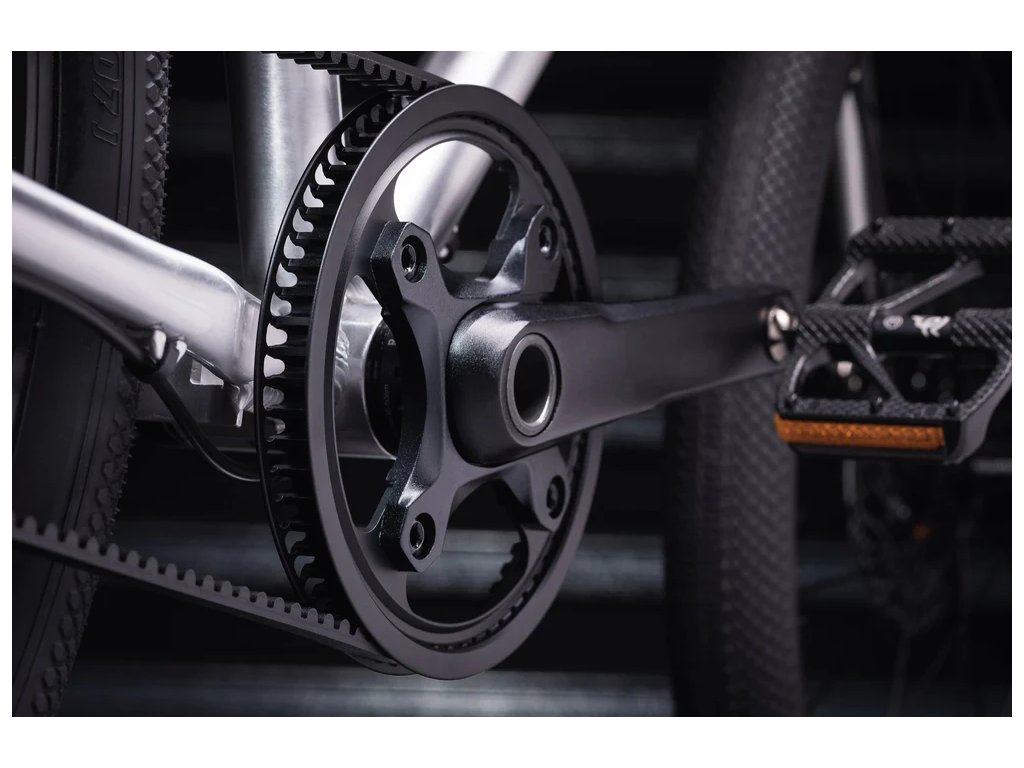 Kevlarem vyztužený řemenový pohon nahrazuje tradiční ocelový řetěz a kazetu robustním, odolným a čistým hnacím ústrojím. Snadno se čistí, nevyžaduje téměř žádnou údržbu a vydrží nájezd až 20 000 km.