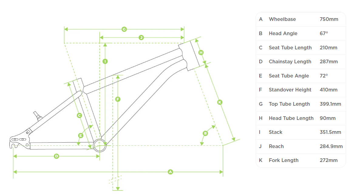 - Speciální dětská geometrie - děti mohou sedět vzpřímeně a zároveň zapojit střed těla a hýždě pro delší výdrž při šlapání. Delší rozvor kol zajišťuje stabilitu a minimalizuje riziko vyklouznutí při nárazu předního kola. Výška a dosah rámu jsou vyvážené, takže sjezdy budou zábava beze strachu