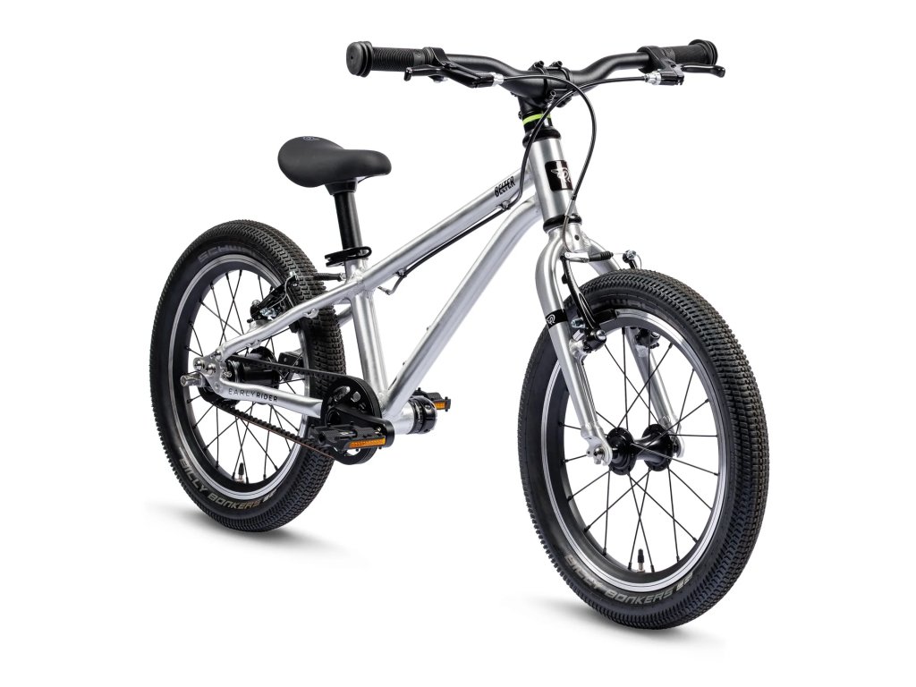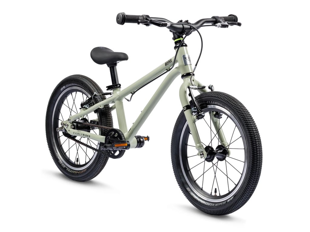 Early Rider Belter Auto 16 kombinuje lehký hliníkový rám se speciální dětskou geometrií pro vyšší stabilitu a agilní ovládání. Bezúdržbový 8mm řemenový pohon je spojen s automatickým 2rychlostním zadním nábojem Sturmey Archer, který zajišťuje plynulé řazení přizpůsobené tempu jezdce, bez nutnosti manuálního přehazování. Tohle kolo bude děti bavit.