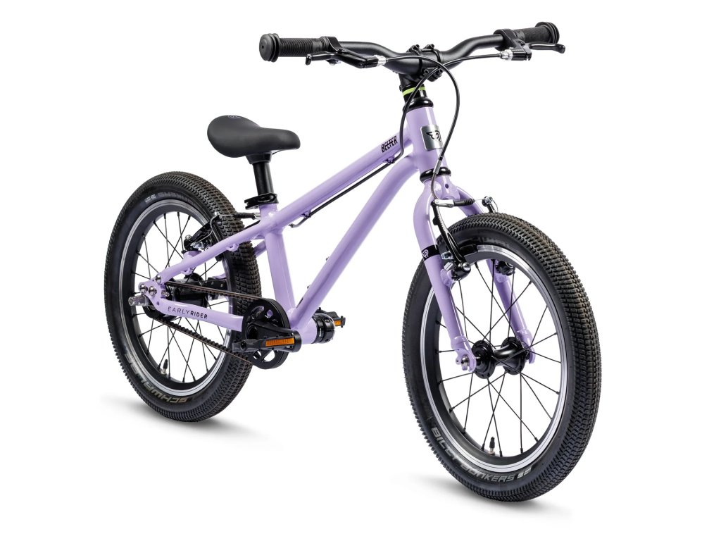 - Spolehlivé pláště - Belter 16 je standardně vybaven rychlými plášti Schwalbe Billy Bonkers 2,0", které usnadňují učení a zvyšují bezpečnost jízdy. Na rovině jedou lehce, za mokra lépe drží stopu a na nerovnostech jsou výrazně stabilnější. Díky většímu objemu vzduchu také lépe tlumí nárazy, což znamená bezpečnější a zábavnější jízdu