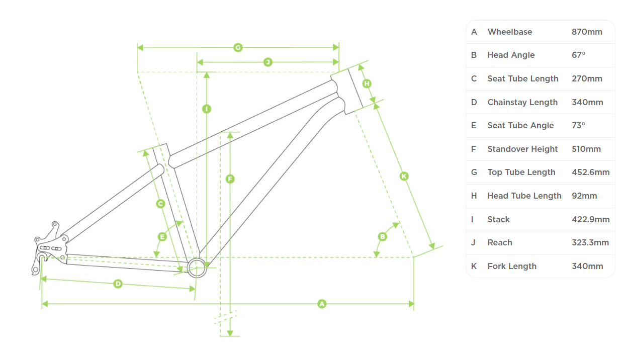 Vylepšená geometrie nabízí nižší střed pro větší stabilitu, volnější úhly hlavové trubky pro snadnější ovládání v sjezdech a nižší rám pro pohodlné nastupování.