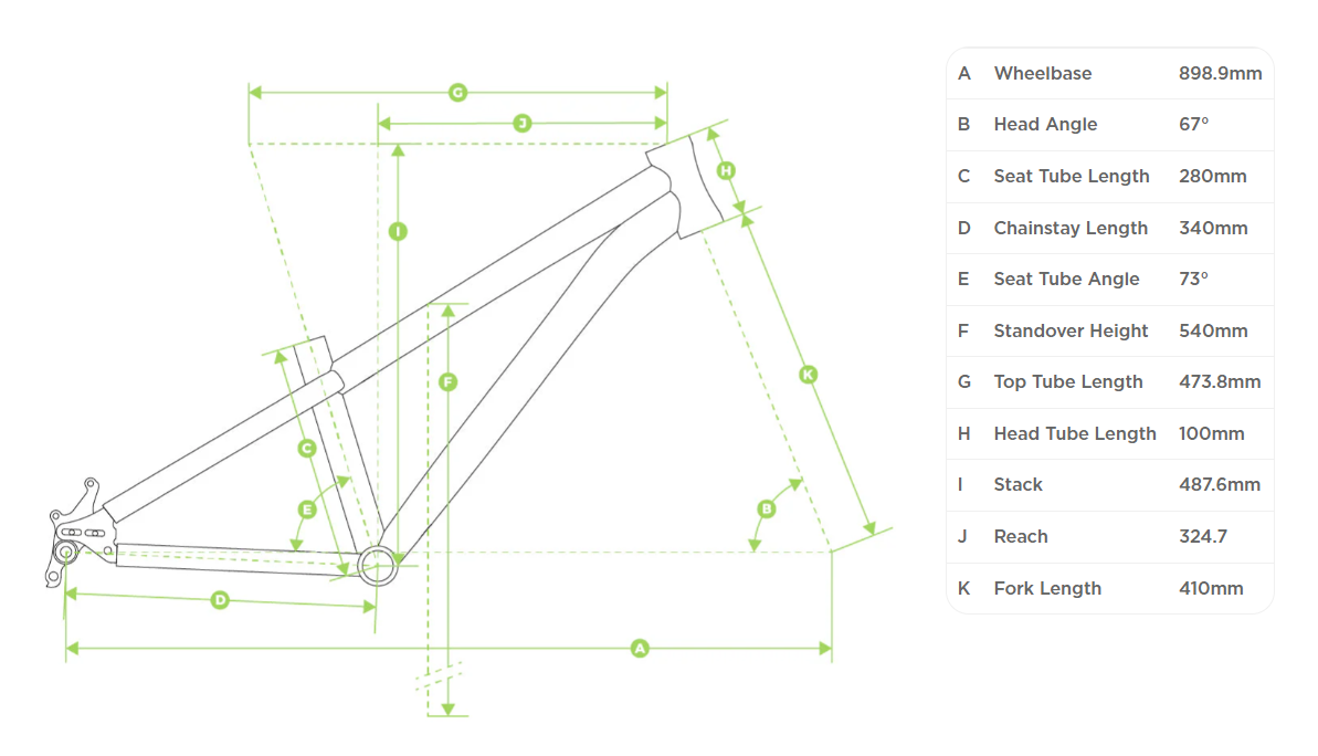 Výkonnostní geometrie - Seeker X20 má geometrií navrženou pro rychlost, technickou jistotu a sebevědomí i na náročných úsecích. Nízké těžiště udržuje jezdce v rovnováze v zatáčkách a uvolněný úhel hlavové trubky usnadňuje sjezdy. Krátká zadní stavba dodává kolu hravost a snadnou ovladatelnost