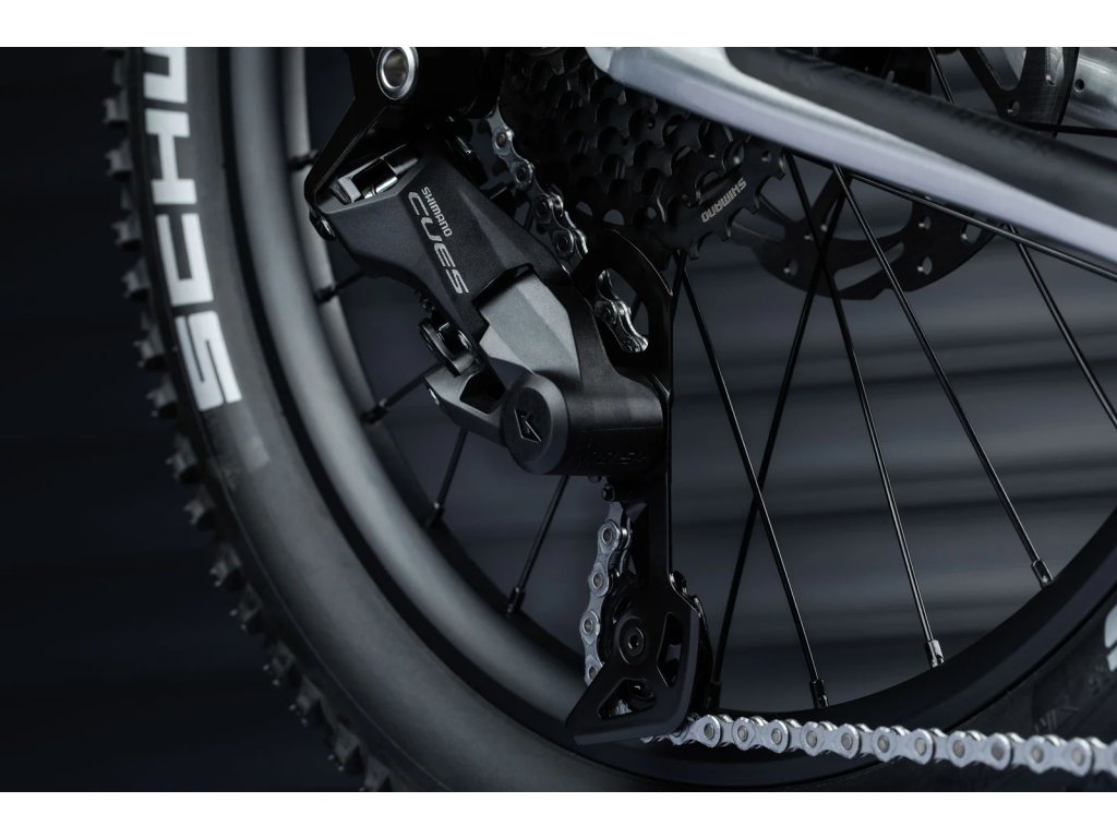 Kola s utěsněnými ložisky a pevnými osami zvládnou pořádnou zátěž a jedou plynule v každé situaci. Široké pláště Schwalbe Smart Sam 2,35" dodávají skvělou trakci na hlíně, kamení i kořenech. O efektivní přenos síly se stará 110mm řetězový set a spolehlivá 9rychlostní přehazovačka Shimano CUES, která drží tempo v kopcích i při rychlých výjezdech ze zatáček.