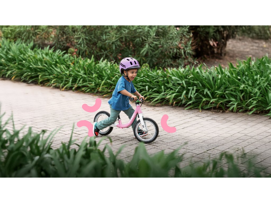 Lehké odrážedlo Woom GO 1 má nízký nástup, velmi nízkou polohu sedu a dětskou geometrii. To zajišťuje stabilitu, dobrou rovnováhu a více radosti z jízdy. Vidlice je vybavena pojistkou proti nechtěnému protočení řídítek a gripy jsou uzpůsobené malým dětským ručkám. Součástí odrážedla je zadní ráfková brzda, kterou se tak mohou děti učit používat již od útlého věku.