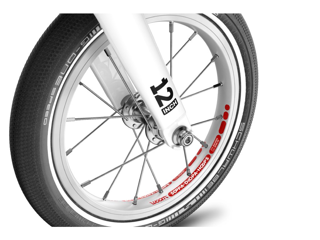 Woom GO 1 přijíždí s vysoce kvalitními koly, která byla pečlivě navržena do posledního detailu – od hladce se otáčejících nábojů po pevné paprsky z nerezové oceli a lehké hliníkové ráfky. Extra úzký náboj na zadním kole nabízí dostatek prostoru pro nohy během jízdy.