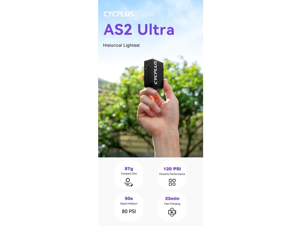 Vybavte se na cestu pro každý případ s elektrickou mini pumpou Cycloc AS2 Ultra, která spolehlivě nahradí CO2 bombičky i ruční pumpičky. Je to evoluční řešení pumpy AS2 Pro, přičemž zachovává její výkonnost, ale vylepšuje hmotnost.