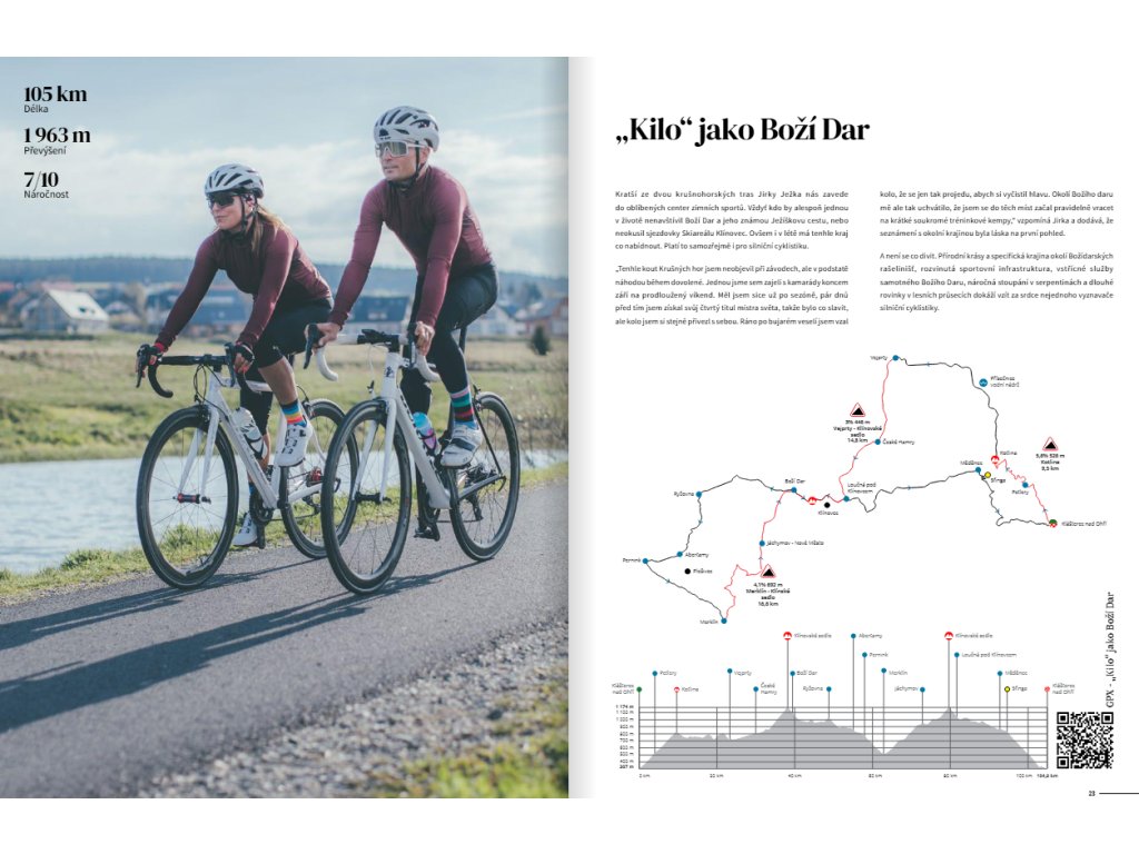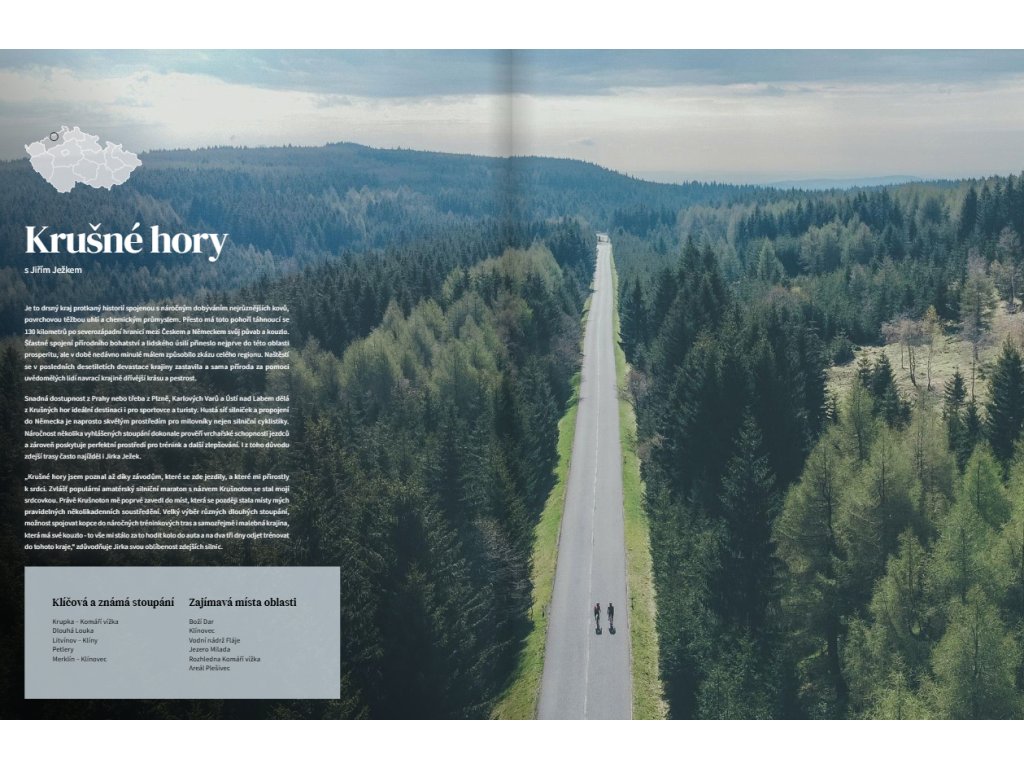 Najdeš zde také tipy na místa, která rozhodně stojí za návštěvu, a doporučení na restaurace, bistra či kavárny, kde příjemně doplníš energii. Díky tomu se kniha stane nepostradatelným parťákem při plánování tréninků, objevování nových regionů i pohodových vyjížděk s kamarády.