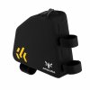 Připevňuje se k horní trubce pomocí pásků na suchý zip vyztužených Hypalonem, aby se minimalizovalo poškrábání rámu.