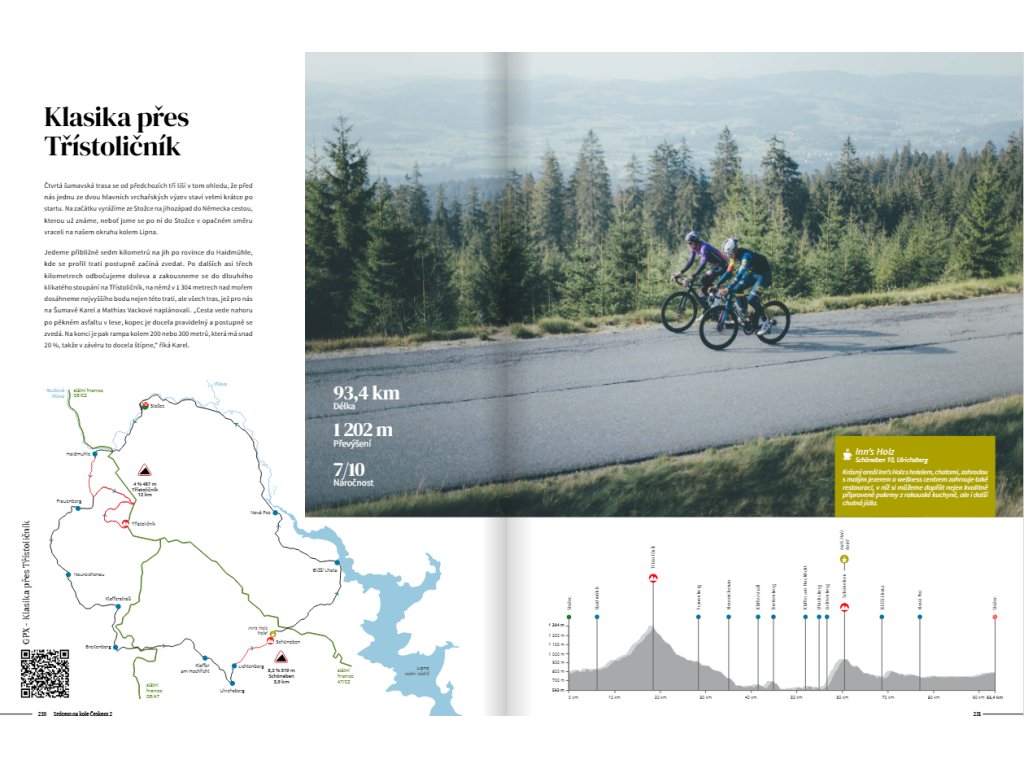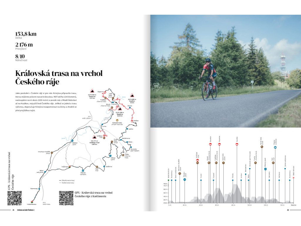 Projekt Srdcem na kole Českem vám nabídne všechny tyto zážitky – a ještě mnohem víc. Každá trasa obsahuje podrobný popis, mapu, výškový profil, fotografie a GPS soubor ke stažení pomocí QR kódu, abyste se snadno zorientovali. Navíc zde najdete i tipy na zajímavá místa, která stojí za návštěvu, a doporučení na restaurace, bistra či kavárny, kde načerpáte nové síly. Díky tomu se kniha stane vaším nepostradatelným parťákem při plánování tréninků i pohodových vyjížděk s přáteli.