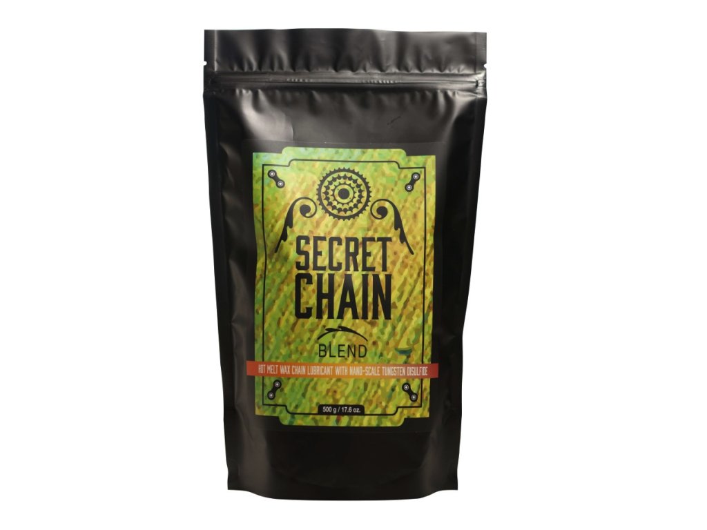 Skládá se z vysoce rafinovaného parafínu laboratorní kvality a vysoké koncentrace 3 specifických velikostí disulfidu wolframu v nanoměřítku, Secret Chain Blend působí nejen jako lubrikant, ale ve skutečnosti působí na úpravu povrchu řetězu a vyplňuje všechny štěrbiny řetězu. Výsledkem je, že řetězy voskované pomocí Secret Chain Blend a Secret Chain Lube budou časem a po opakovaném voskování rychlejší. Secret Chain Blend je jediný horký voskový lubrikant, který má specificky přizpůsobený a kompatibilní kapací vosk, který lze použít k „doplnění“ vosku podle potřeby, čímž se prodlouží doba mezi aplikacemi horkého vosku a zaručí nejtišší možný chod hnacího ústrojí. Použití kombinace Secret Chain Blend a Secret Chain Lube může dramaticky prodloužit životnost součástí řetězu a hnacího ústrojí (až 10x).
